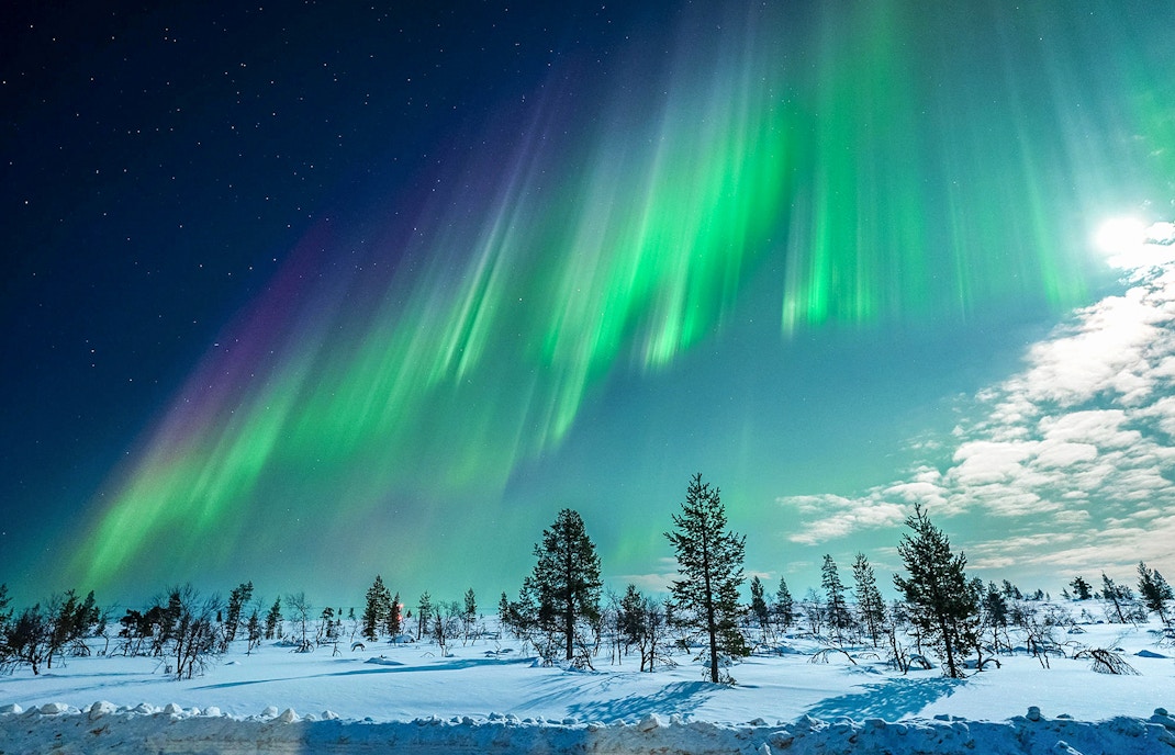 Levi is a popular ski resort town with great facilities, a lively après-ski scene, and multiple viewpoints offering stunning views of the Northern Lights. It offers many guided tours, including snowshoe hikes and nighttime skiing, designed to help you catch the best views of the Aurora Borealis.