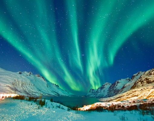 Often called the 'Gateway to the Arctic,' Tromso is one of the best places in Norway to see the Northern Lights. Surrounded by fjords and high peaks, it also offers diverse Northern Lights tours, including cruises, bus chases, reindeer sledding, and more.