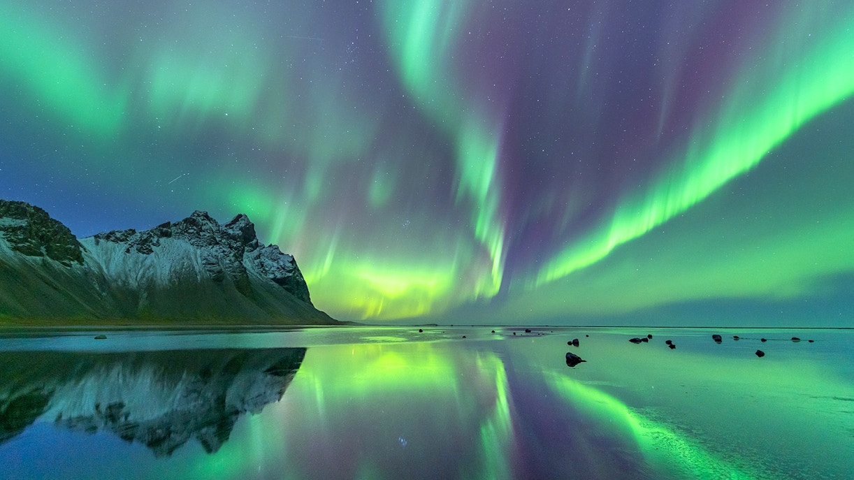 The Northern Lights appear in different shapes and sizes depending on the time of night and their intensity. Early in the evening, you may see a graceful arc stretching across the sky, but the patterns become more dynamic with increased auroral activity.